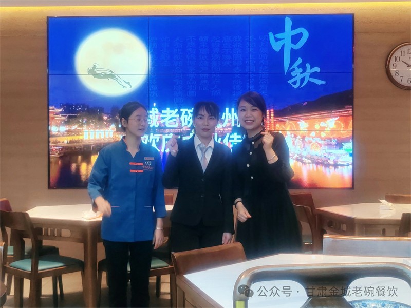 在中秋佳書(shū)來(lái)臨之際,金城老碗牛肉面蘭州總店大眾巷店、靜寧路店、五里鋪蘭新店自發(fā)組織員工采取各種形式歡慶中秋佳節(jié)。